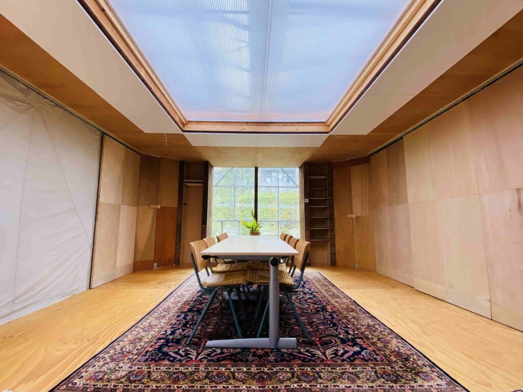 Het is een sfeervolle, rustgevende ruimte met wol, hennep en hout in de hoofdrol. Het heeft een goede vibe en fijn uitzicht op de tuin. Overdag is er daglicht en ās avonds dimbare verlichting voor elke sfeer. Infrarood panelen zorgen voor een aangename temperatuur, ook als het buiten en in de Kas koud is.