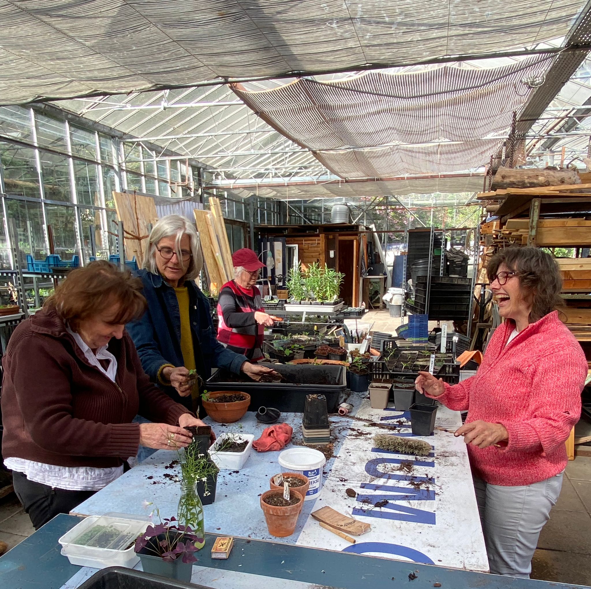 Al het jong grut in de zaaibakken staat schouder aan schouder te smachten naar meer bewegingsruimte. Ze worden deze weken met veel zorg én pret met wortel en al voorzichtig uit de grond gewipt en overgebracht naar zogenaamde P9 potjes. Daar mogen ze verder groeien tot ze over een week of zes voldoende wortels hebben voor de volgende stap: naar de verkooptafel en dan de tuin in!